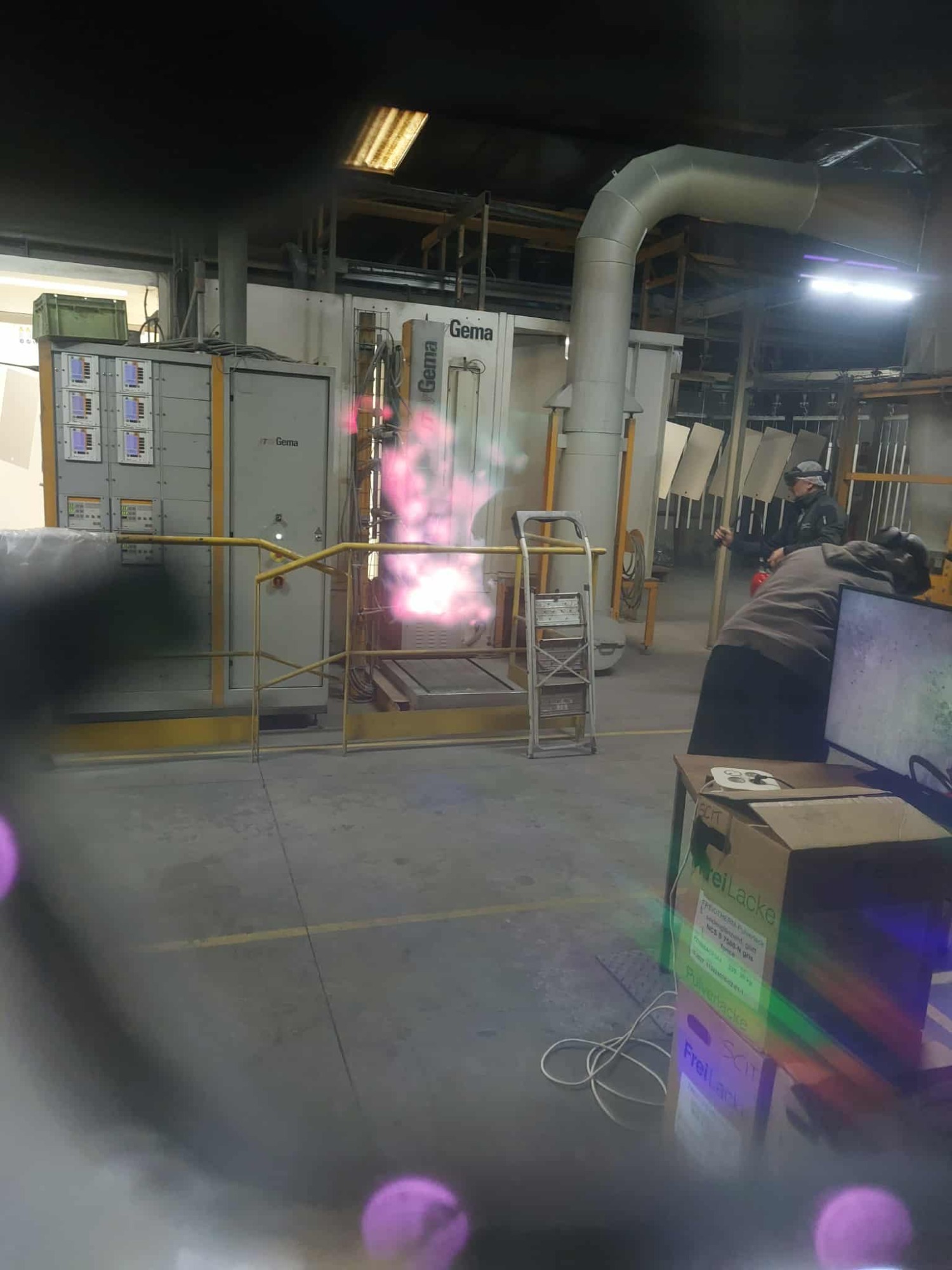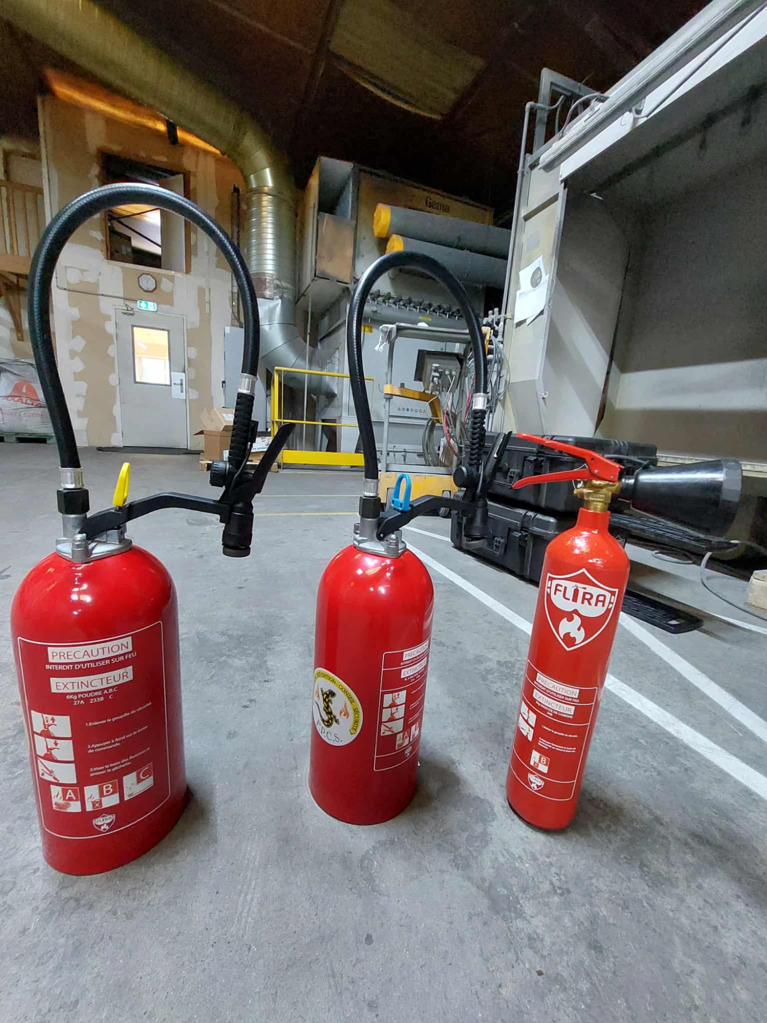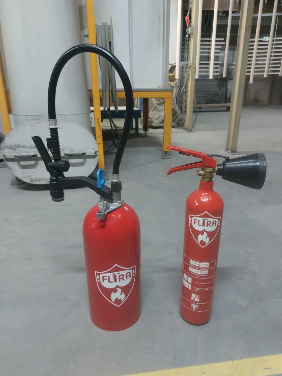 Avec manipulation de vrai extincteur, qui dispose d'un jet virtuel, pour éteindre le feu.